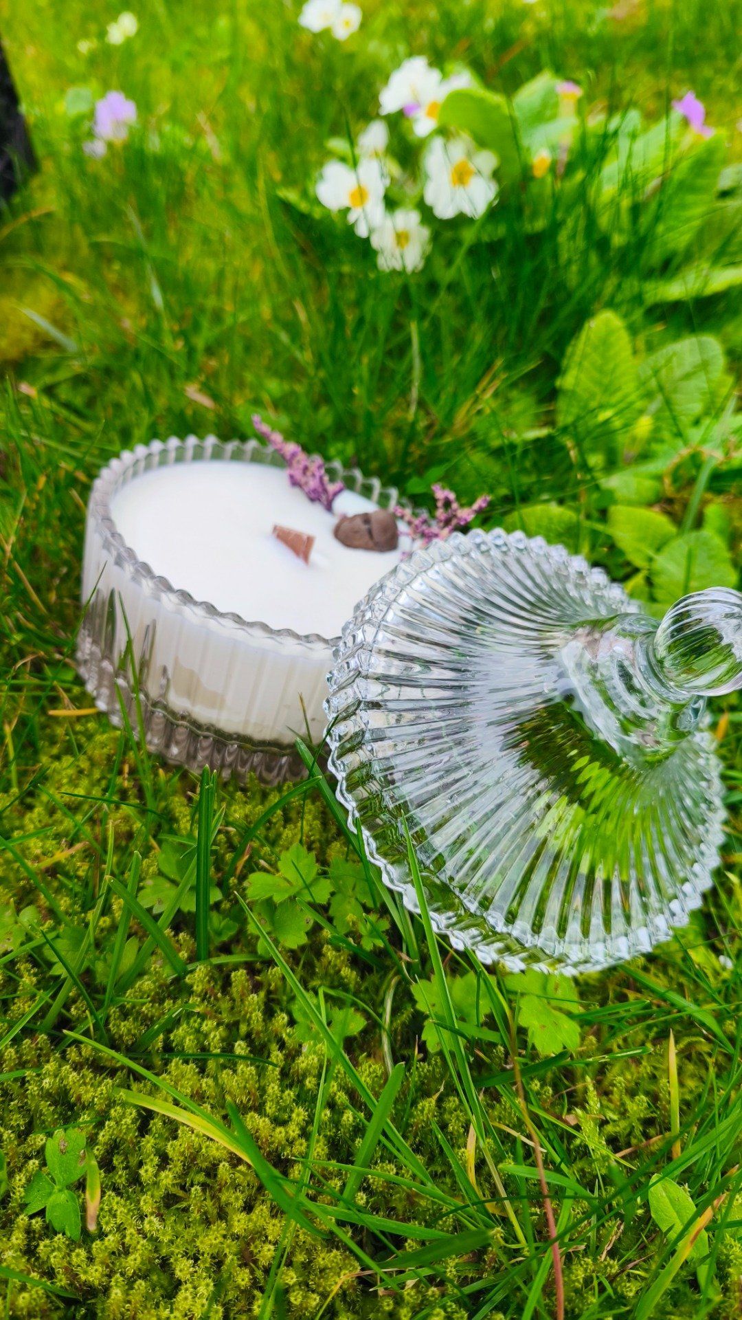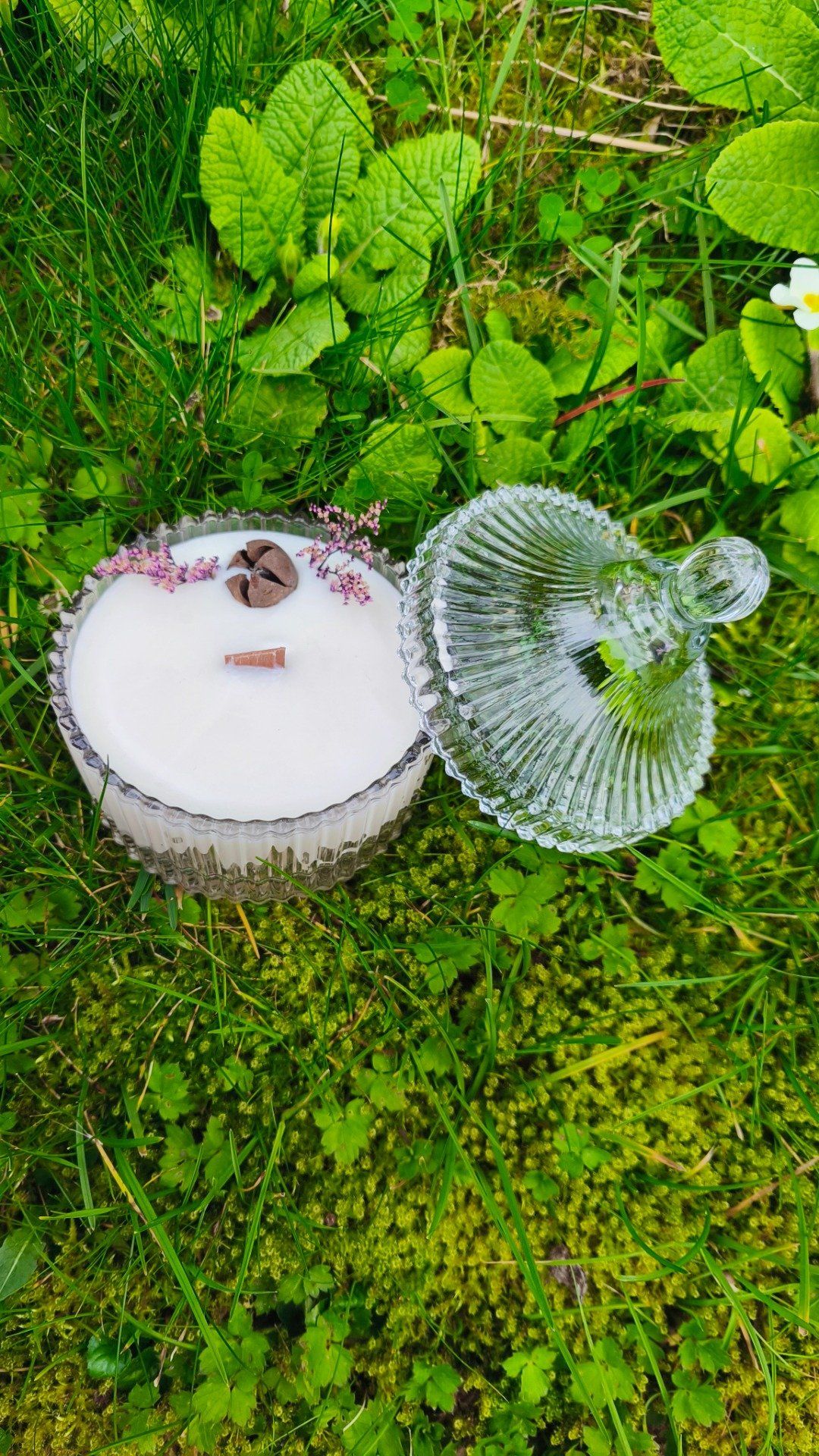 La surface est délicatement décorée d’une fleur séchée élégante. Chaque pièce est unique, réalisée avec soin et passion.