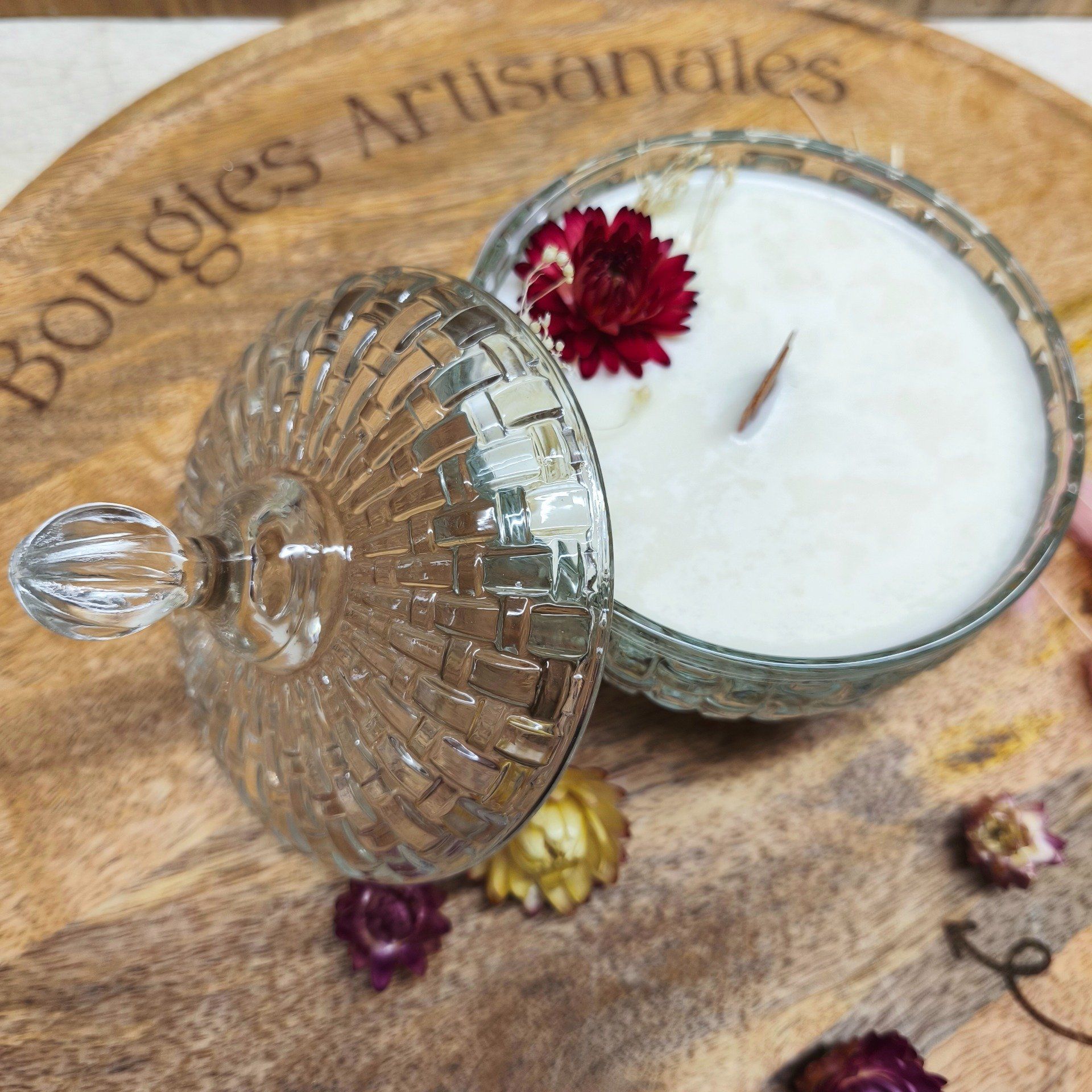 Un objet déco réutilisable : Une fois la bougie terminée, la bonbonnière devient un élégant écrin pour vos bijoux, cotons ou gourmandises.