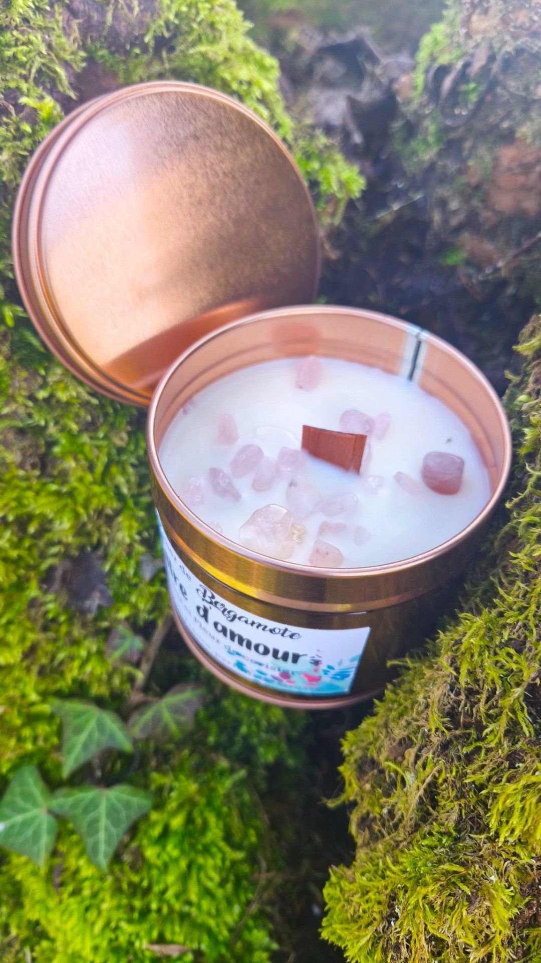 Son parfum de Fleur de cerisier, aérien et légèrement sucré, s'accorde merveilleusement bien avec l'énergie du Quartz rose. En brûlant, sa mèche en bois crépite doucement, libérant une atmosphère propice à l'amour de soi et à la bienveillance. C’est la bougie idéale pour un moment de douceur, un bain relaxant ou une soirée cocooning.