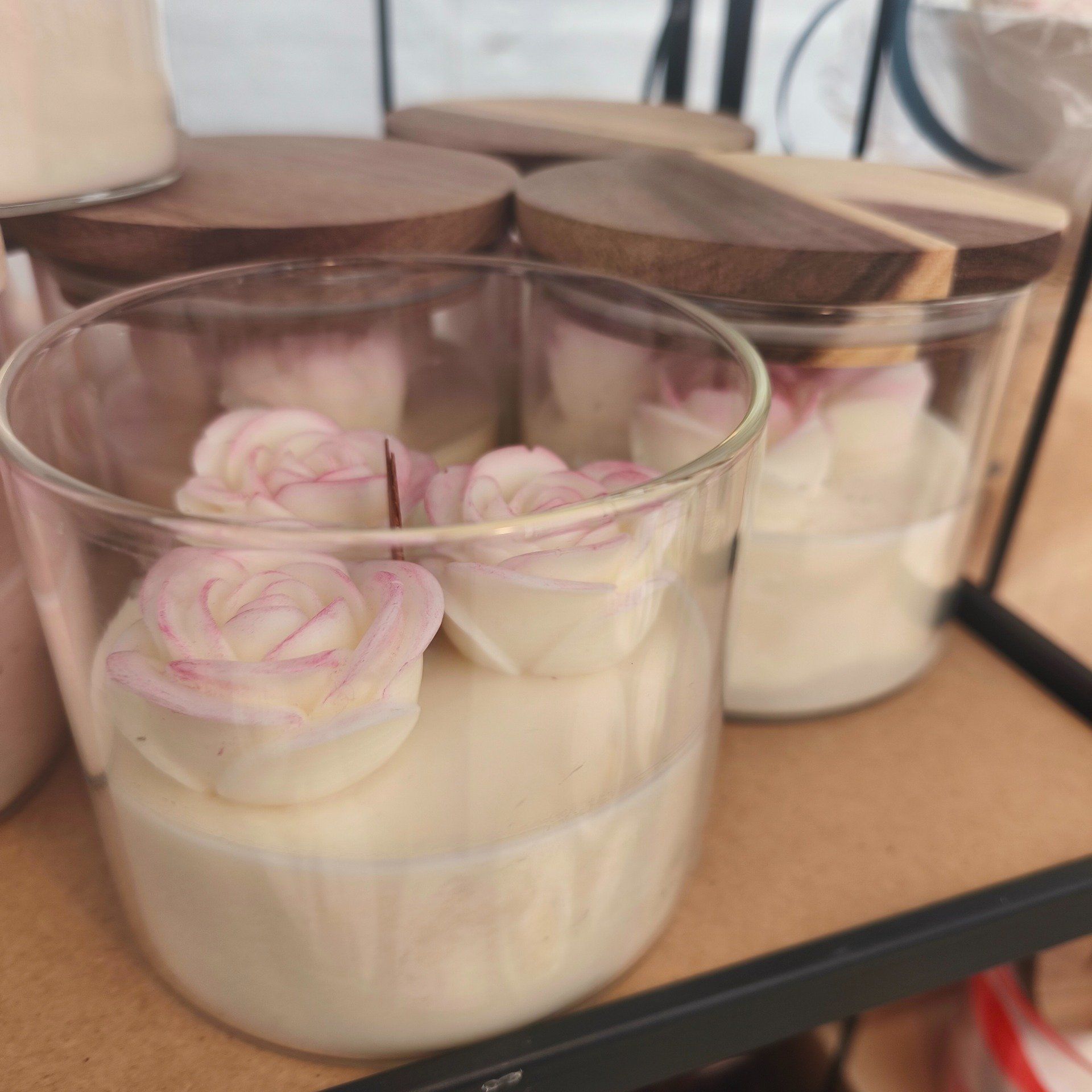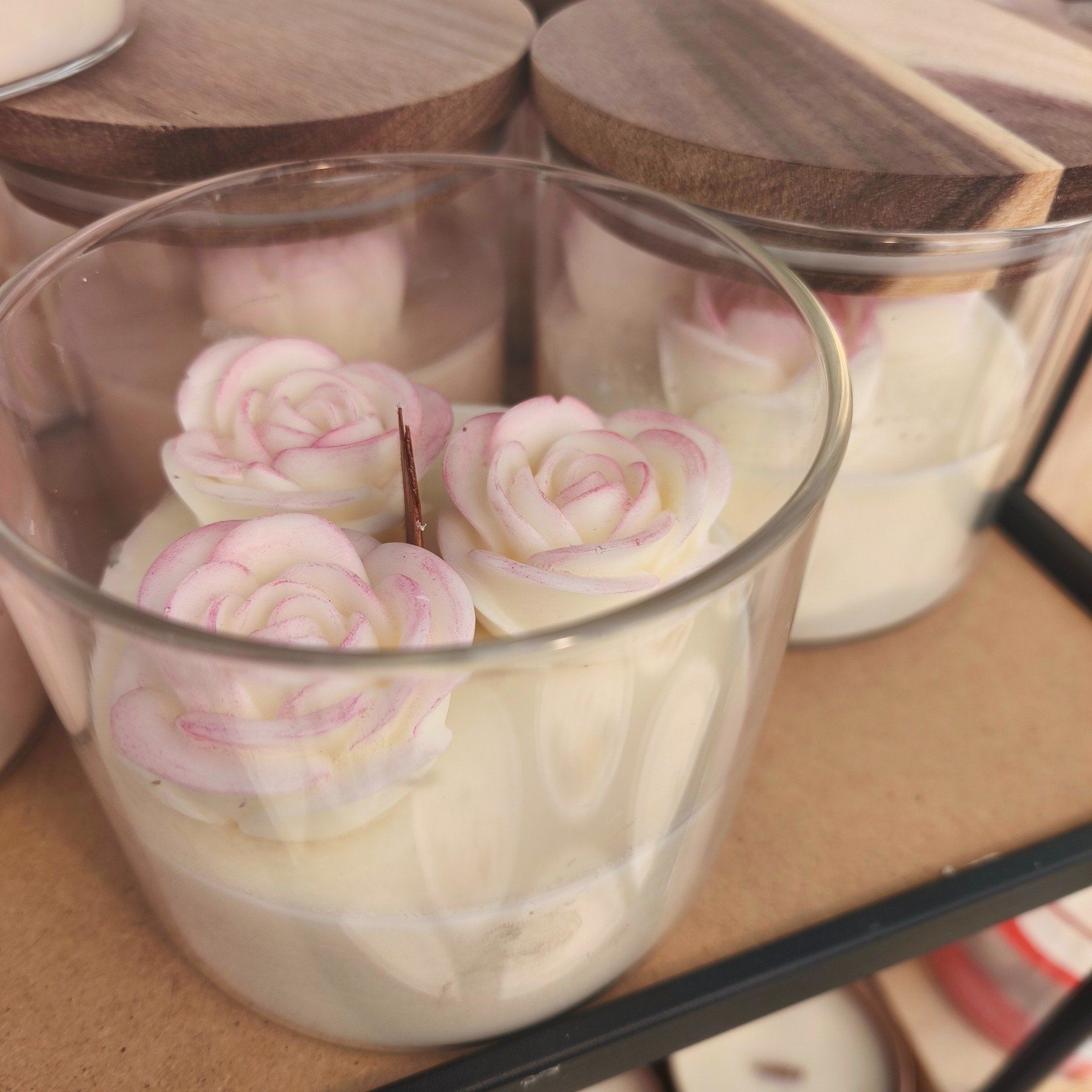Laissez-vous séduire par la grâce absolue de notre bougie Jardin de Roses. Plus qu'une simple bougie, cette création est un hommage à la reine des fleurs. Présentée dans un pot en verre épuré, elle révèle trois magnifiques roses en cire sculptée, dont les pétales semblent avoir été délicatement teintés de rose à la main pour un réalisme saisissant.