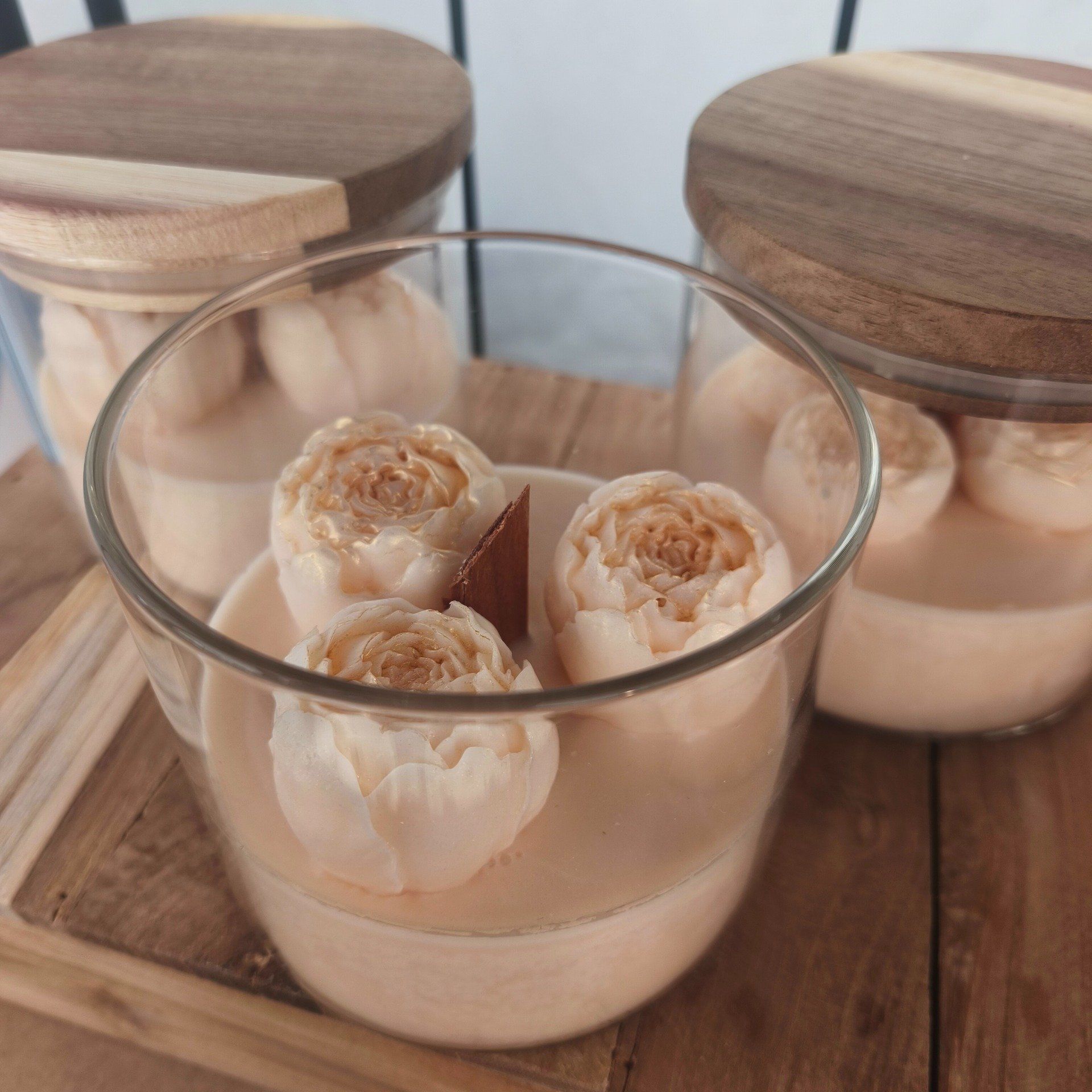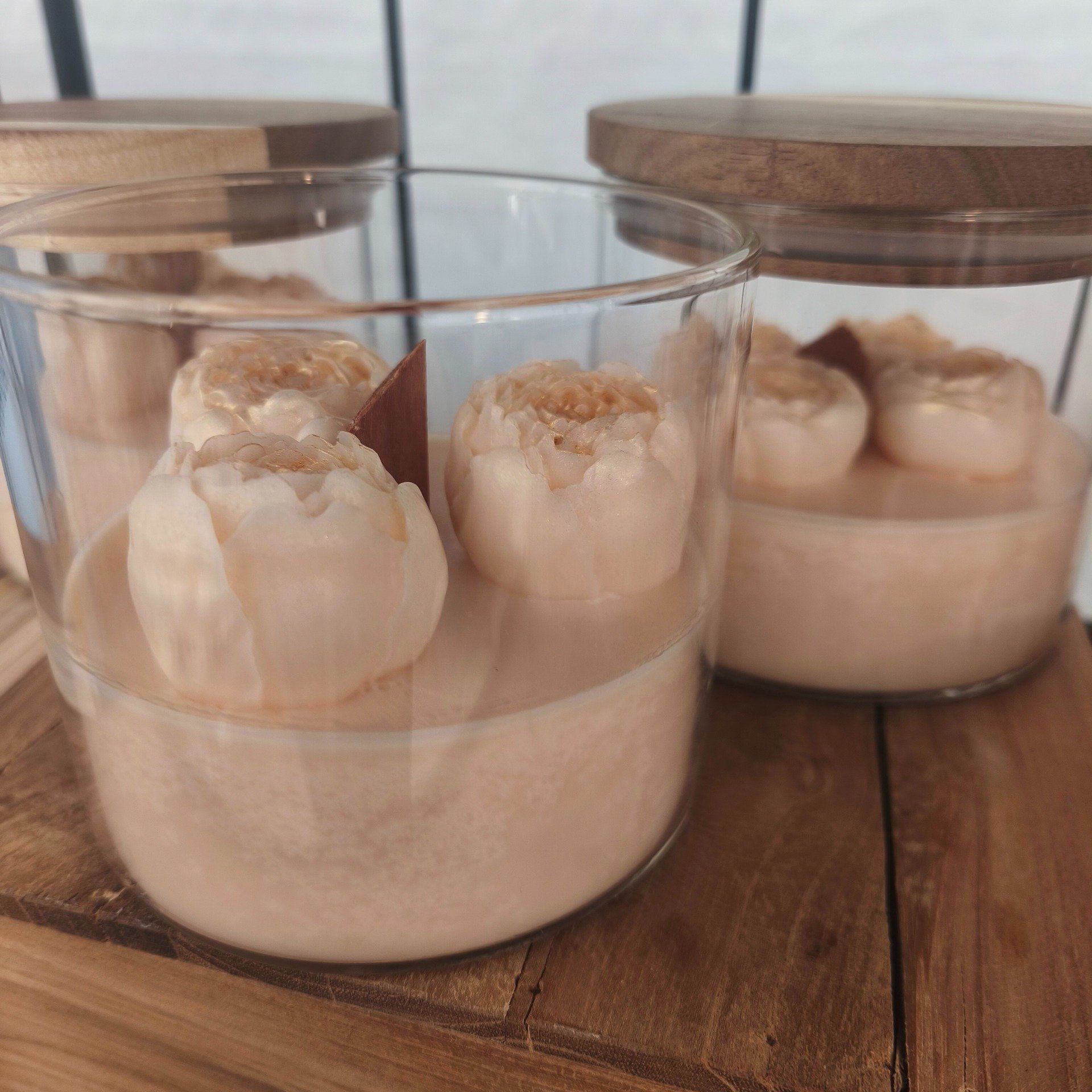 Le Duo Chic Verre & Bois : Le pot en verre laisse admirer les détails, tandis que le couvercle en bois massif apporte une touche naturelle et chaleureuse pour préserver le parfum.