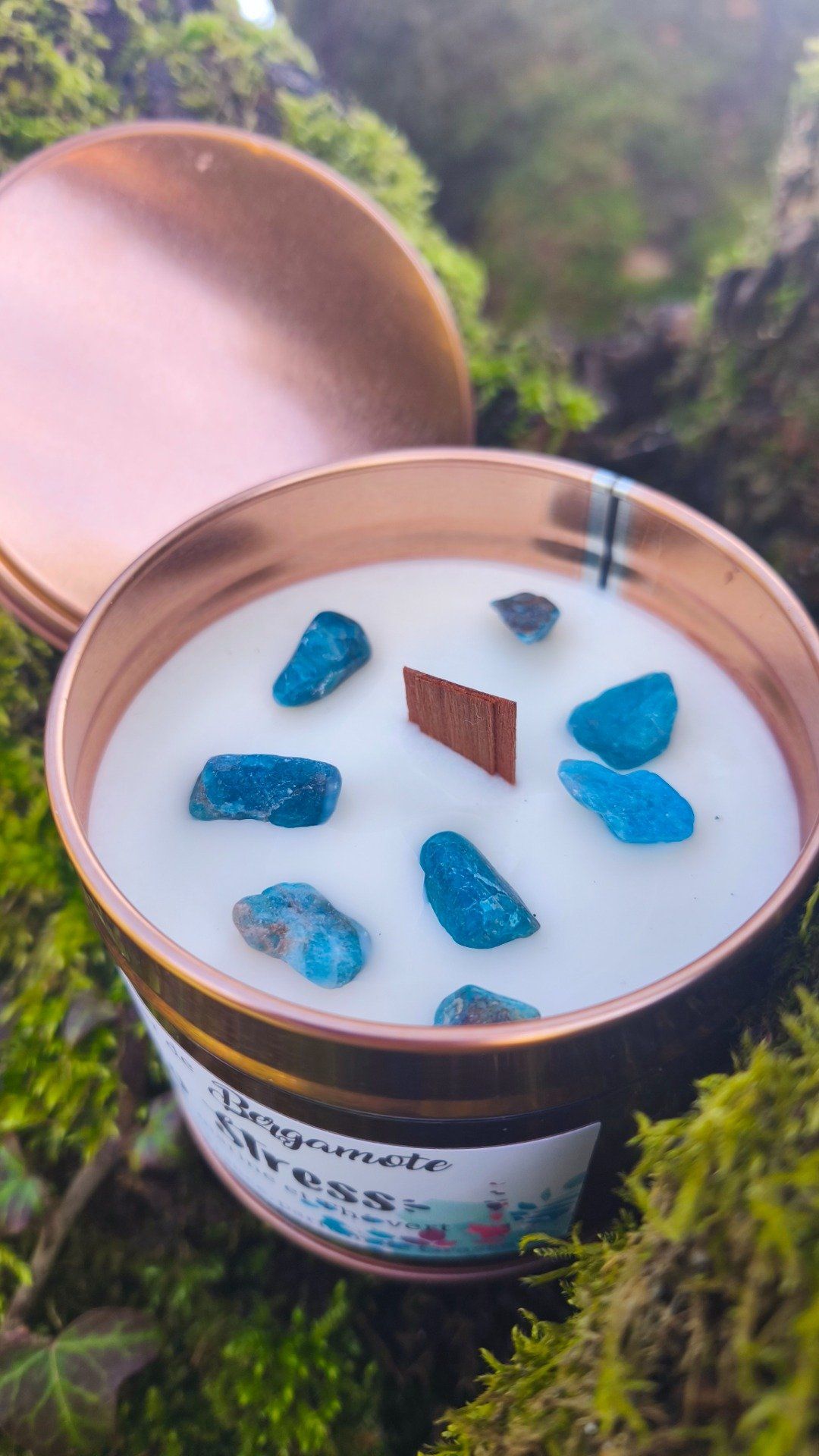 Son parfum de thé vert, frais et légèrement herbacé, agit comme une caresse rafraîchissante, tandis que l'aigue-marine apporte sa clarté cristalline. Le crépitement de sa mèche en bois transforme votre salon en un espace de méditation, idéal pour décharger les tensions accumulées durant la journée.